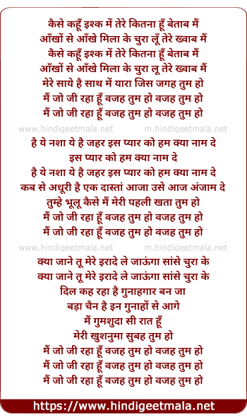 Lyrics of Wajah Tum Ho - II - वजह तुम हो