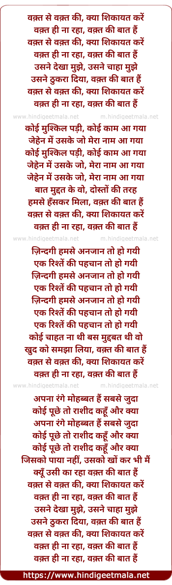 Lyrics of Waqt Kee Baat Hai - वक़्त से वक़्त की, क्या शिकायत करें