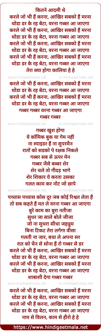 Lyrics of Warna Gabbar Aa Jayega - वरना गब्बर आ जायेगा