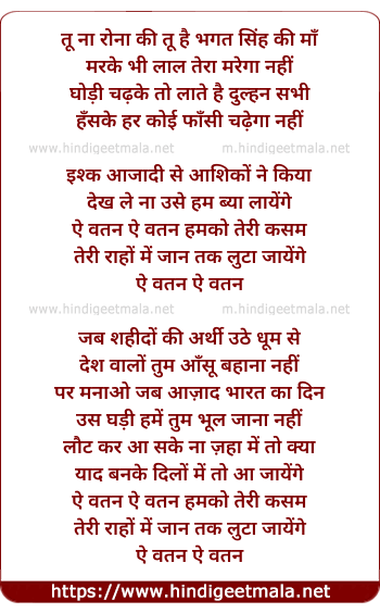 Lyrics of Ae Watan Ae Watan Humko Teri Kasam (Part 3) - ऐ वतन ऐ वतन हमको तेरी कसम