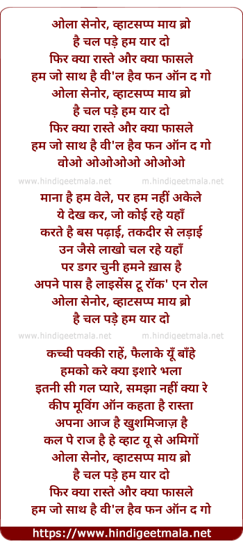 Lyrics of Wats Up My Bro - ओला सेनोर, व्हाटसप्प माय ब्रो