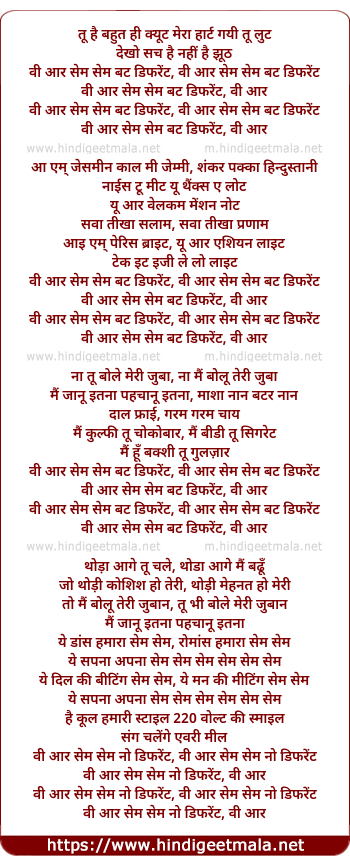 Lyrics of We Are Same Same But Different - वी आर सेम सेम बट डिफरेंट