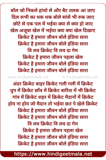 kriket hai hamara jivan bole india sara