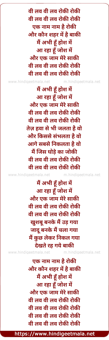 Poetic Translation - Lyrics of We Love We Love Rocky - वी लव वी लव रोकी