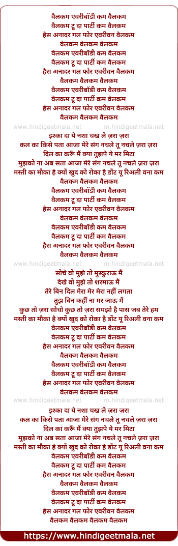 Lyrics of Welcome, Welcome, Welcome - वैलकम, वैलकम, वैलकम