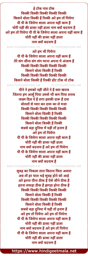 Lyrics of Whisky Whisky, Kisne Bola Whisky Hai - विस्की विस्की, किसने बोला विस्की हैं