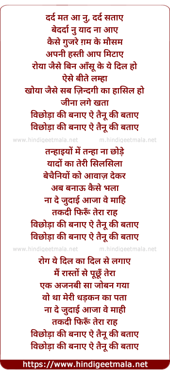 Lyrics of Wichhora - दर्द मत आ नु, दर्द सताए