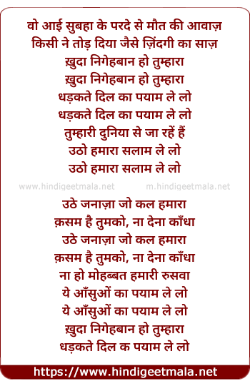 Lyrics of Khuda Nigahbaan Ho Tumhara - ख़ुदा निगेहबान हो तुम्हारा