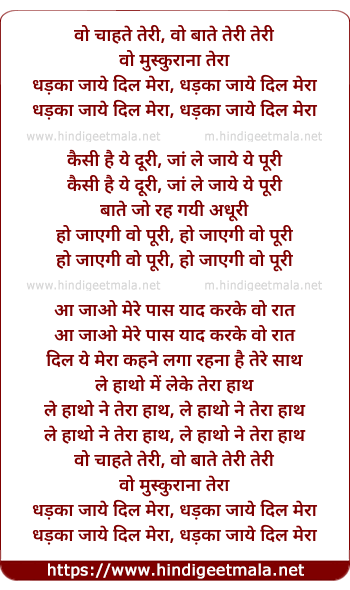 Lyrics of Wo Chahtein - वो चाहते तेरी, वो बाते तेरी तेरी