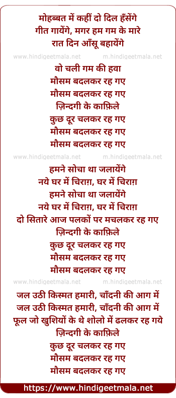Lyrics of Wo Chali Gham Ki Hawa - वो चली गम की हवा