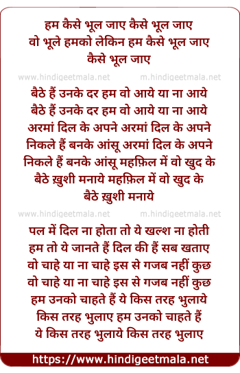 Lyrics of Wo Humko Bhule Lekin Hum Kaise Bhul Jaye - हम कैसे भूल जाए कैसे भूल जाए