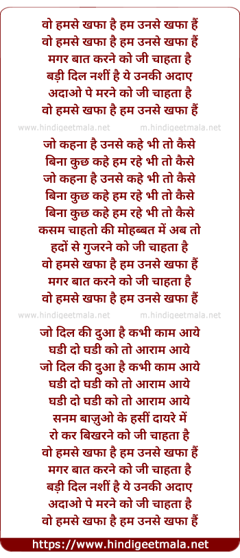 Lyrics of Wo Humse Khafa Hai - वो हमसे खफा है