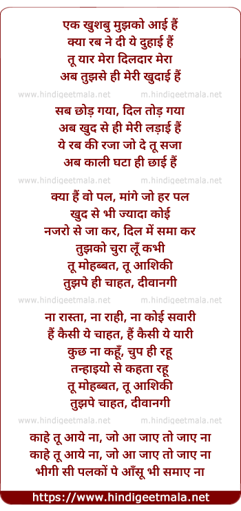 Lyrics of Wo Pal - एक खुशबु मुझको आई हैं
