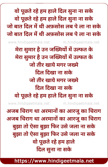 Lyrics of Wo Puchte Rahe Hum Haal-E-Dil Suna Na Sake - वो पूछते रहे हम हाले दिल सुना ना सके