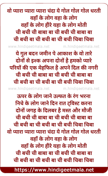 Lyrics of Wo Pyara Pyara Pyara Chanda - वो प्यारा प्यारा प्यारा चन्दा