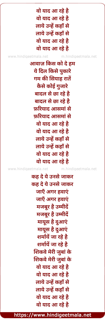 Lyrics of Wo Yaad Aa Rahe Hai - वो याद आ रहे है