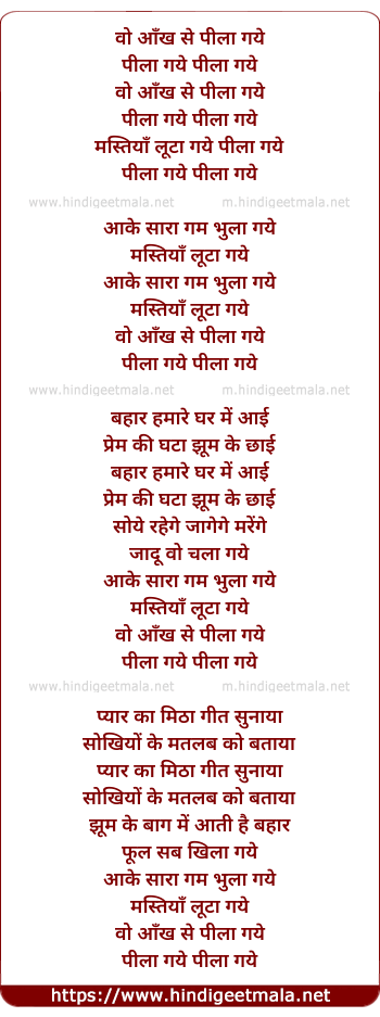 Lyrics of Woh Aankh Se Pila Gaye - वो आँख से पीला गये