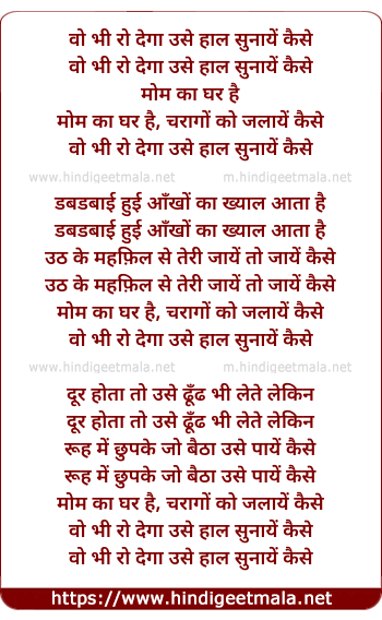 Lyrics of Woh Bhi Ro Dega - वो भी रो देगा उसे हाल सुनायें कैसे