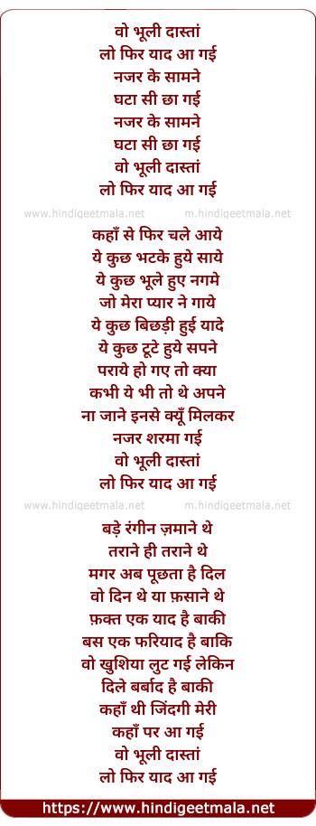 Poetic Translation - Lyrics of Woh Bhuli Dastaan (Radio Mix) - वो भूली दास्तां