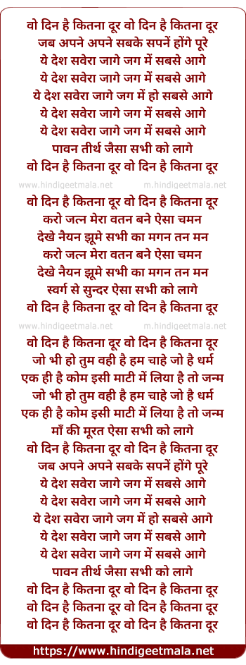 Lyrics of Woh Din Hai Kitna Dur - वो दिन है कितना दूर वो दिन है कितना दूर