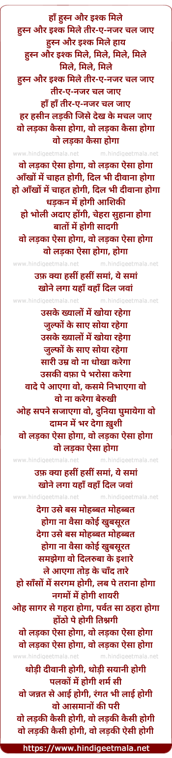 Lyrics of Woh Ladka Aisa Hoga - वो लड़का ऐसा होगा