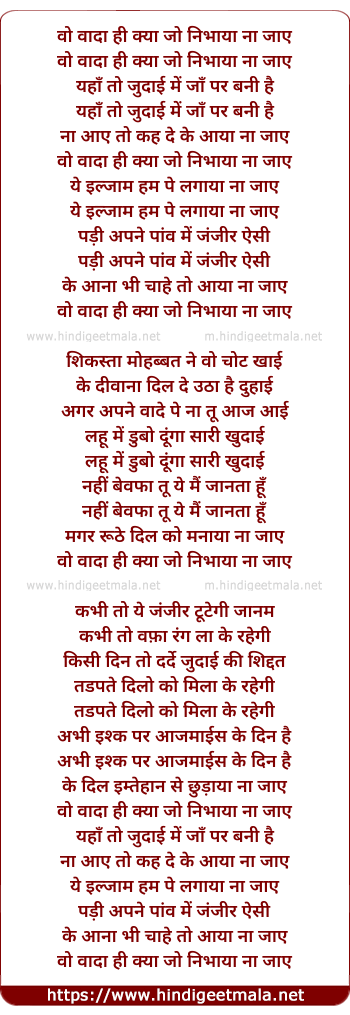 Lyrics of Wo Wada Hi Kya - वो वादा ही क्या
