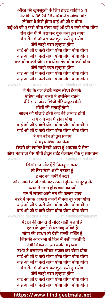 Lyrics of Y O G A Karo Yoga - वाई ओ जी ऐ करो योगा