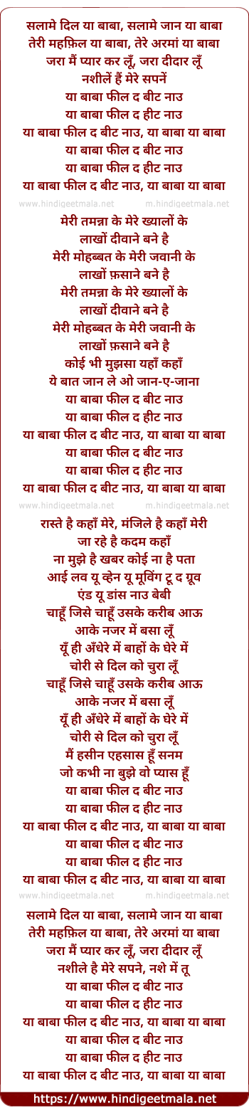 Ya Baba, feel the beat now, Ya Baba, Ya Baba.