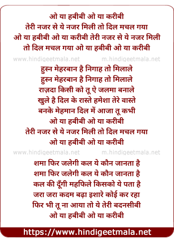 o ya habibi o ya karibi teri najar se ye najar mili