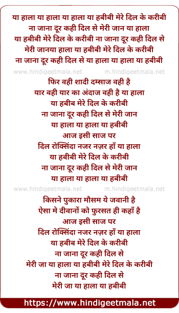 Lyrics of Ya Hala Ya Habibi Mere Dil Ke Kareebi - या हाला या हबीबी मेरे दिल के करीबी
