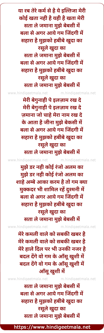 Lyrics of Ya Rabb Tere Karam Se Hai - या रब तेरे कर्म से है