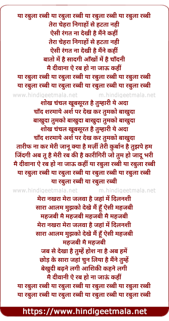 Lyrics of Ya Rabula Rabbi Ya Rabula Rabbi - या रबुला रब्बी या रबुला रब्बी