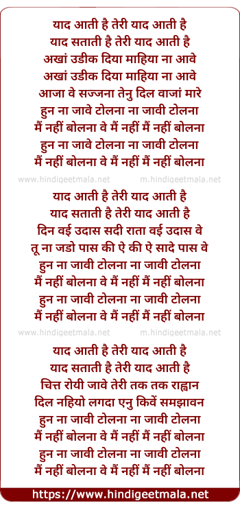 Lyrics of Yaad Aati Hai - याद आती है तेरी याद आती है