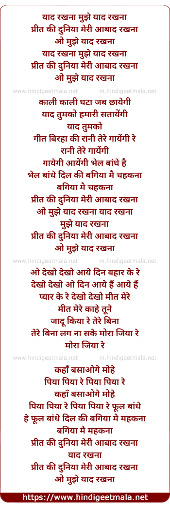 Lyrics of Yaad Rakhna Mujhe Yaad Rakhna - याद रखना मुझे याद रखना