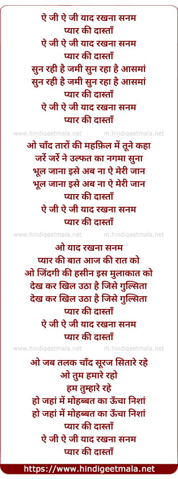 Lyrics of Yaad Rakhna Sanam Pyar Ki Dastaa - याद रखना सनम प्यार की दास्ताँ