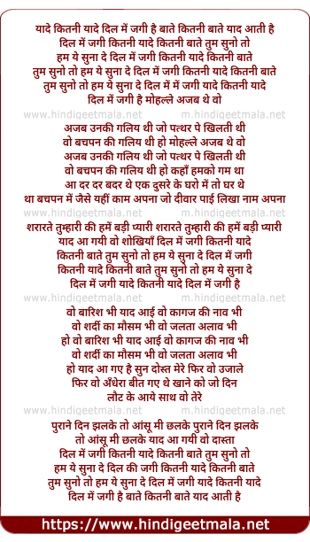 Lyrics of Yaade Kitni Yaade Dil Me Jagi Hai (Duet) - यादे कितनी यादे दिल में जगी है