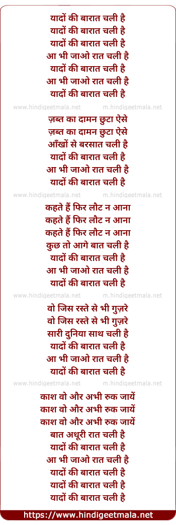 Lyrics of Yaadon Ki Baaraat Chali Hai - यादों की बारात चली है