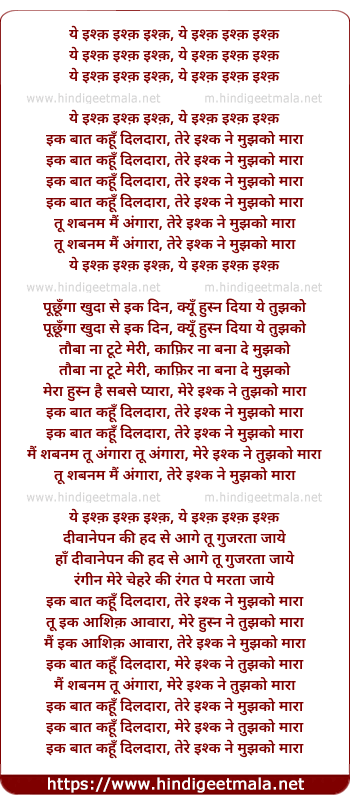 ye ishq ishq ishq, ye ishq ishq ishq