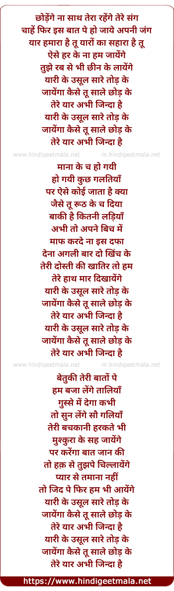 Lyrics of Yaar Zindaa Hai - यार जिंदा हैं