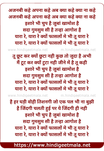 yaara re, yaara re kyu faaslo me bhi tu yaara re