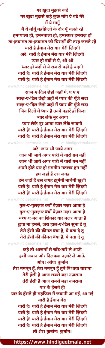 Yaari Hai Imaan Mera Yaar Meri Zingadi - यारी है ईमान मेरा यार मेरी ज़िंदगी