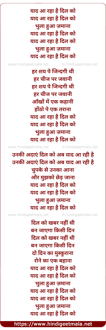 Lyrics of Yad Aa Raha Hai Dil Ko Bhula - याद आ रहा है दिल को