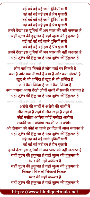 Lyrics of Yaha Julm Ki Hukumat Hai - वई वई वई वई जाने दुनियाँ सारी
