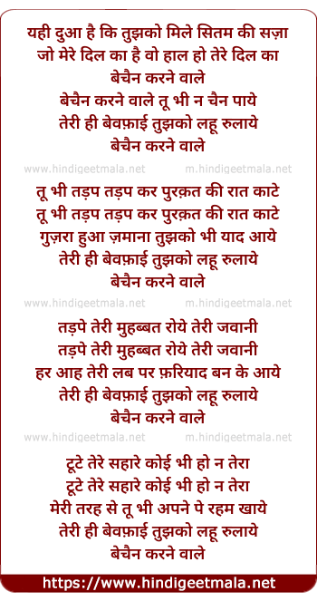 Lyrics of Yahi Dua Hai Ki Tujhko Mile Sitam Ki Saza - यही दुआ है कि तुझको मिले सितम की सज़ा