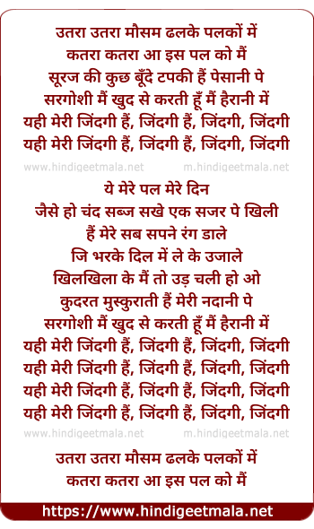 Lyrics of Yahi Meri Jindagi Hai, Jindagi Hai - यही मेरी जिंदगी हैं, जिंदगी हैं