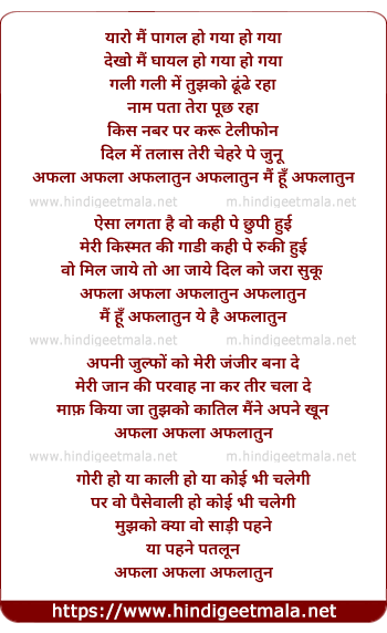 Lyrics of Yaro Mai Pagal Ho Gaya - यारो मैं पागल हो गया