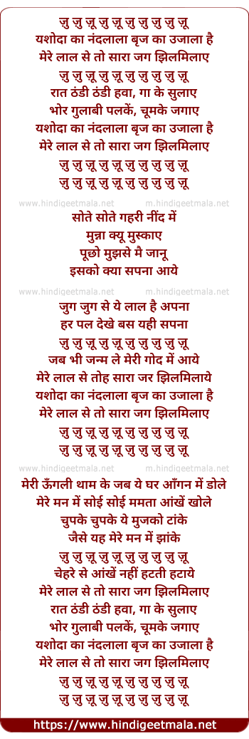 Lyrics of Yashodaa Kaa Nandalala Brij Kaa Ujaalaa Hai - यशोदा का नंदलाला बृज का उजाला है