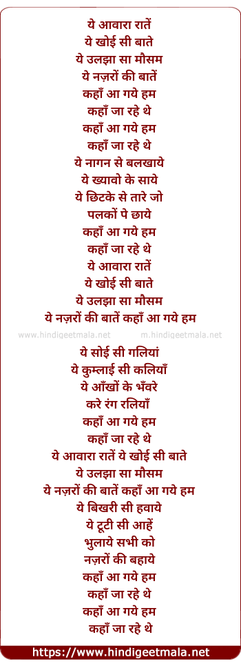 Lyrics of Ye Aawara Raatein - ये आवारा रातें