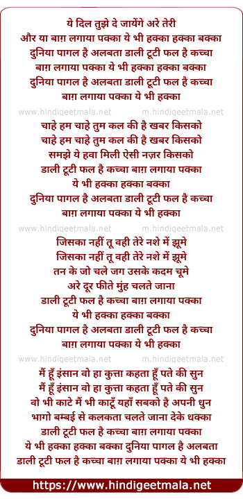 ye bhi hakka hakka bakka dunia pagal hai albata