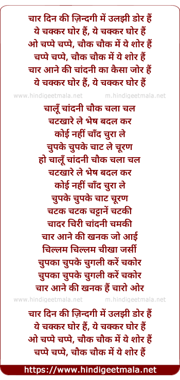 Lyrics of Ye Chakkar Ghor Hai - चार दिन की ज़िन्दगी में उलझी डोर हैं